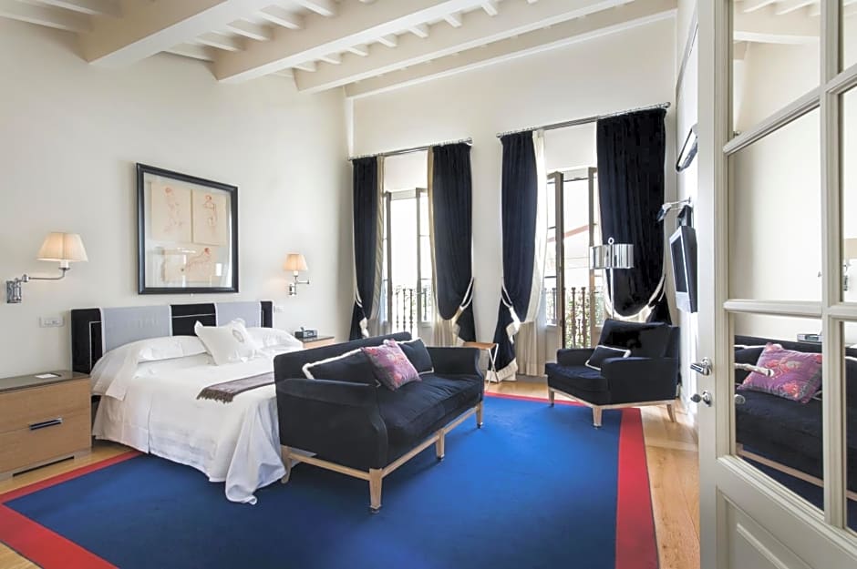 Very bright and spacious, with high ceilings and large windows. The lounge area includes a sofa bed, a dining table, and 2 armchairs. Overlooking Via Strozzi or Via Vecchietti.